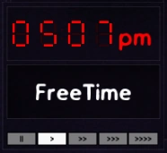 At the top is the clock's location. It provides you with the in-game time. Every hour you will get a part of your income, and by the end of the day you will have received all of your daily income which is obtained by having Prisoners and/or Workshops. You will also get a default of $2000 Federal Grant money per day.