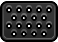 The object appears to be black, plastic-rubber mat, that has holes in it to provide for extra dirt and grime removal from shoes and extra grip on the floor that the user's shoe(s).