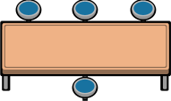 During parole hearings, there is usually one seat free on the end since there are only two entities: the Parole Officer & Parole Lawyer, that lead the parole meeting. The parole lawyer and officer always sit on the three-seat side. The prisoner typically sits across from them but will sometimes sit next to them.